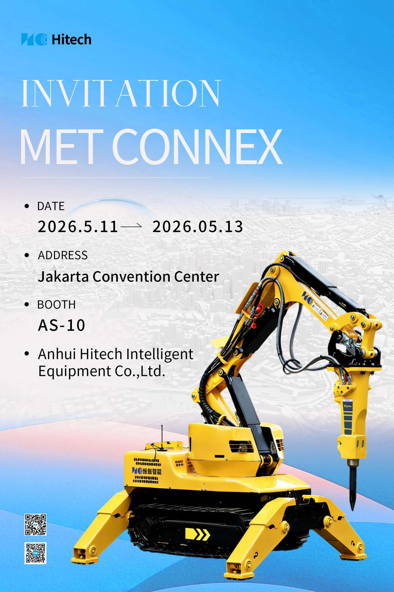 Anhui Hitech Intelligent Equipment Co., Ltd. is pleased to announce its participation in MET CONNEX 2026, which will take place from May 11 to May 13, 2026 at the Jakarta Convention Center, Indonesia.